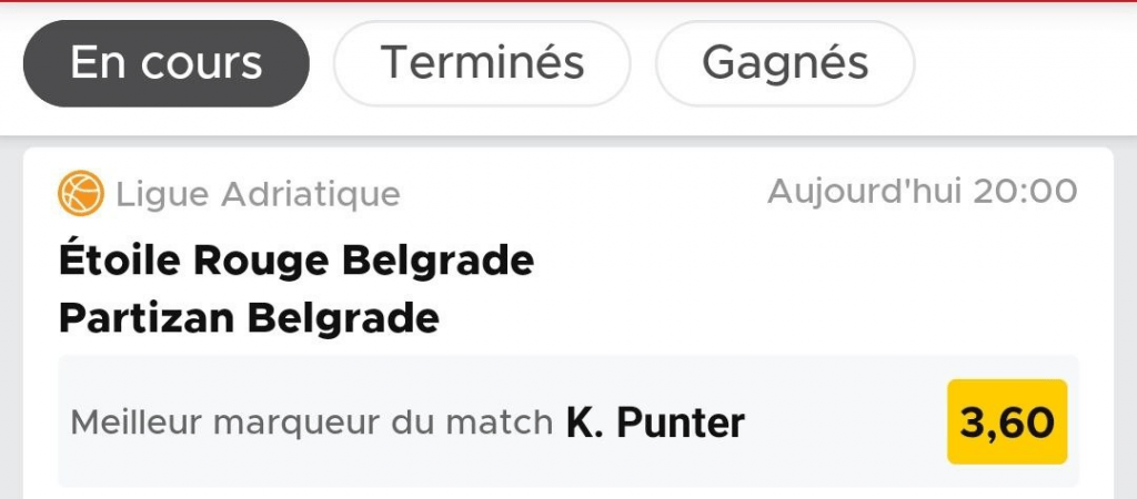 | Pronostic | Meilleur marqueur du match : Kevin Punter (Partizan) |