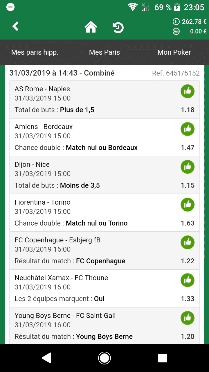 Pareil Hermann… C’est rageant ! Le pire c’est quand par exemple tu fais un combi à 3 matchs que t’en as que 2 de bons, alors tu te dis le prochain je joue sur 2 matchs et t’en a que 1 de bon… 😤 !!