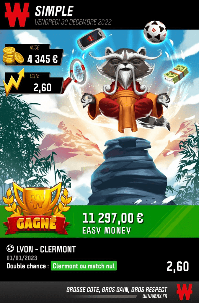 À noter que Winamax s’est régalé sur les values CB…avec le nul City, le nul Barcelone, la défaite du PSG, la défaite de Lyon, le nul de Chelsea. Bravo à ceux qui ont pu follow le conseil SUREBET (sur cet article), ça a pu donner un bénéf sympa (+1297 ici par exemple). J’ai reçu pas mal de tickets surebet (surtout sur le match de lyon, bravo!).
