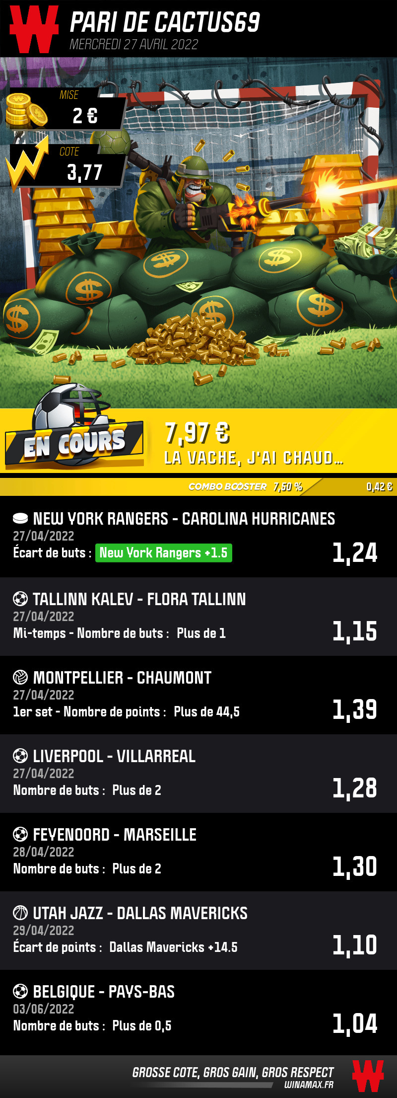 Erreur sur le combi c’est celui ci, les matchs ci-dessus étaient hier 😅