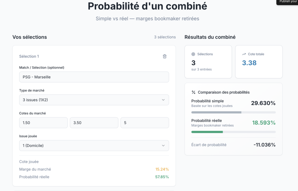 🔍 Quelle est la vraie probabilité de réussite de mon combiné, une fois les marges bookmaker retirées ?