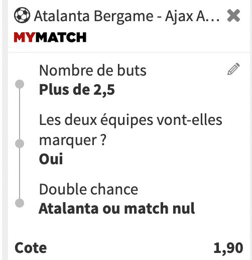 PronosticSpécial MYMATCH : Atalanta ne perd pas + les deux équipes marquent + over 2.5 buts