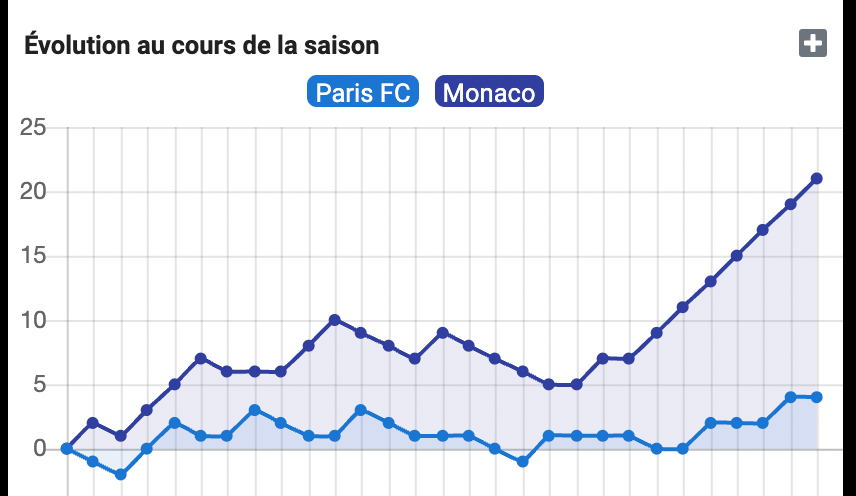 Ce graphique illustre très bien la dynamique des deux clubs. Illustration fournie par l’excellent Datafoot.